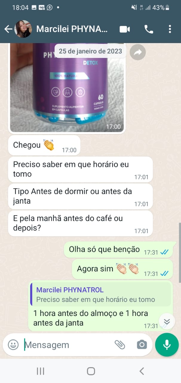 refeições. Recomendamos o uso do PHYNATROL DETOX por no mínimo 3 meses para melhor resultado.